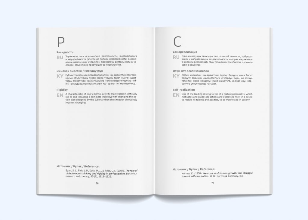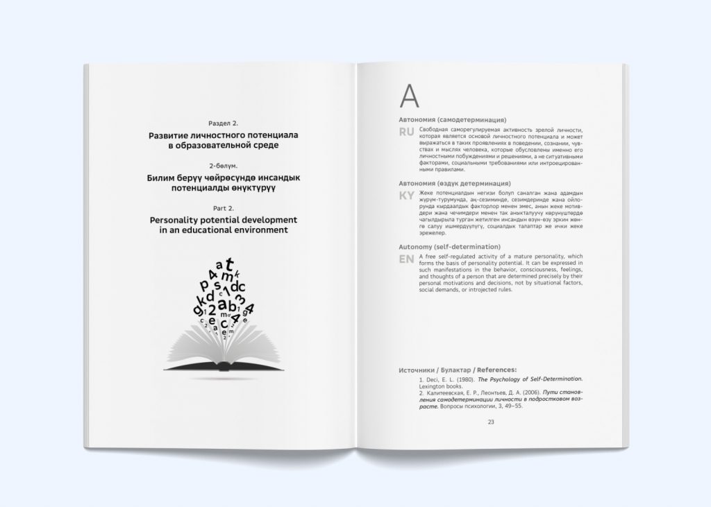 Это первое пособие, в котором понятия и их определения системно представлены на кыргызском языке наряду с русским и английским.