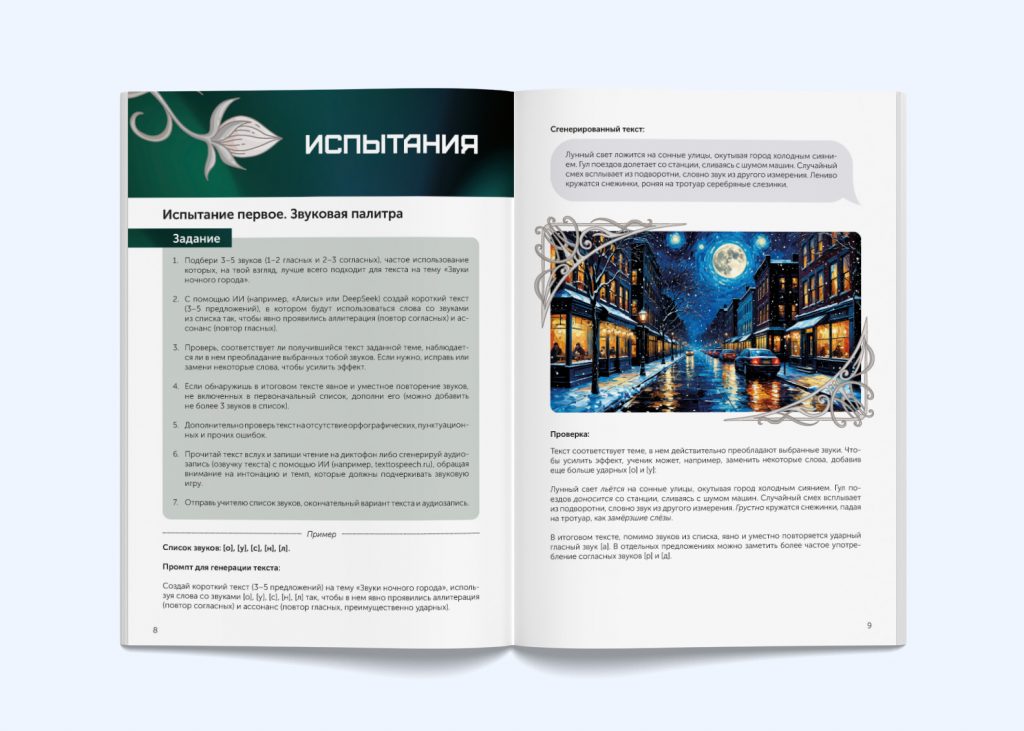Роль учителя здесь особая — показать, что ИИ не только источник готовых ответов, но и полноценный инструмент для обучения и развития. В этом и помогает брошюра: в ней собраны творческие задания для учеников основной и старшей школы, которые позволяют им научиться отличать живое слово от шаблона и использовать технологии, не становясь их заложниками.